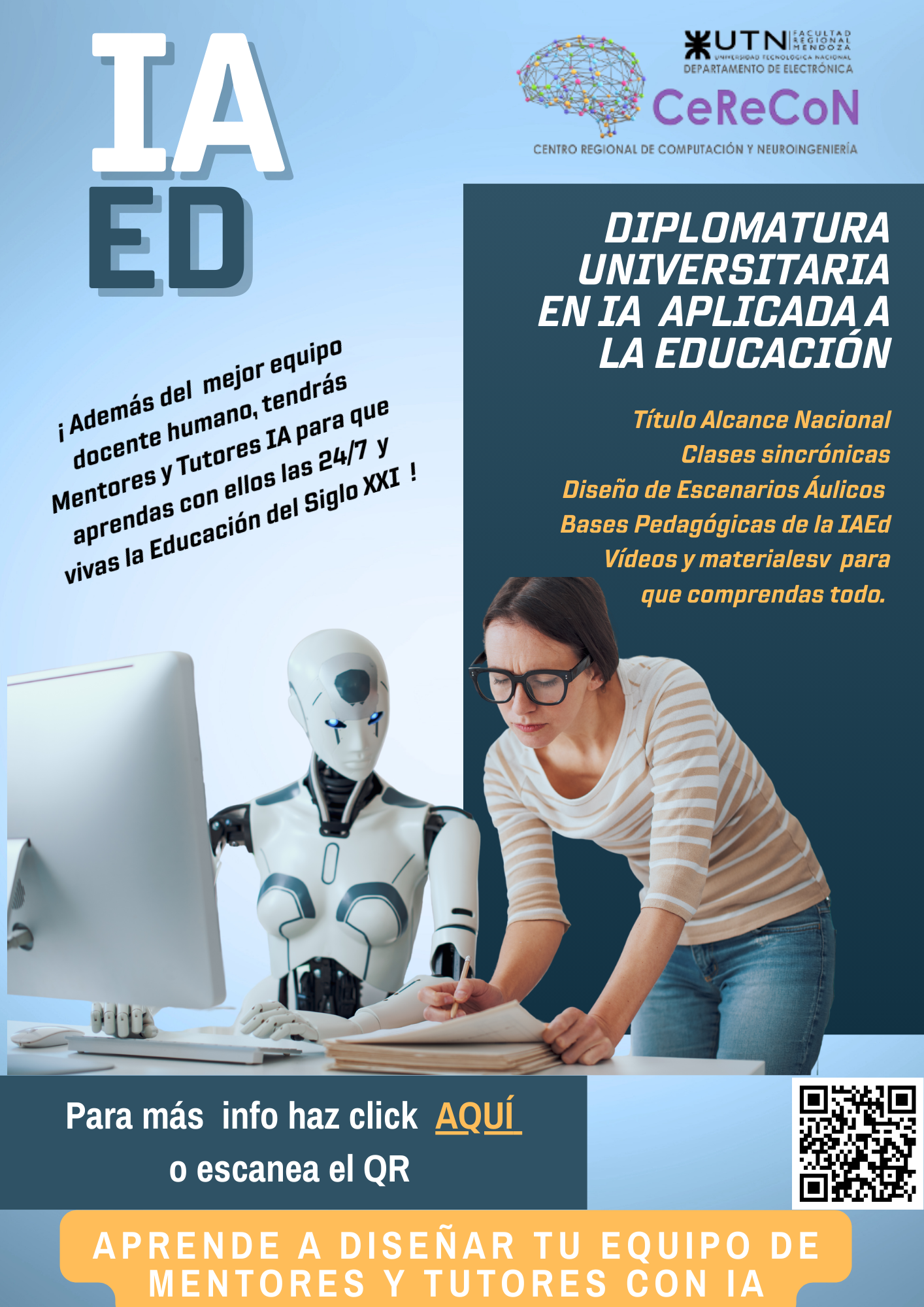 La DIPLOMATURA EN INTELIGENCIA ARTIFICIAL APLICADA A LA EDUCACIÓN te dará una visión global sobre esta temática y sobre todo te brindará CRITERIOS DE DISEÑO de experiencias áulicas junto con herramientas de impacto para tu práctica docente en cualquier nivel del sistema edcativo.
